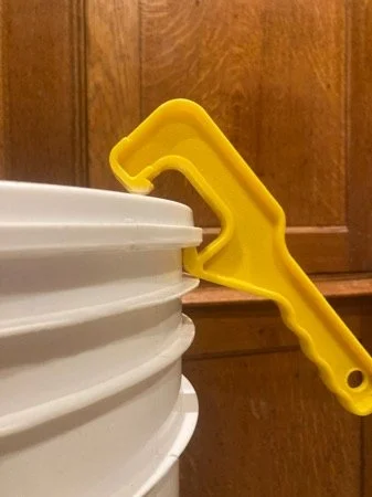 Since honey is hygroscopic, tanks must be full almost to the top and well sealed. Tough containers have a strong seal. It is so good that I find getting the lid on and off a battle. To remove the lid, there is a “curtain” that has to be peeled up. Once it has started coming up, you can use a unique tool. To put it on, angle the top about 20–30 degrees towards the joint opposite you. It is a matter of pushing it down in a small area, just like replacing a bicycle tyre. There is a knack to this.
