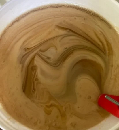 Cool to less than 14 °C and stir twice daily until it becomes stiff. Finally, gently warm to 35ºC (keep it at less than 40 °C, so the crystals don’t melt) until it flows, and bottle.