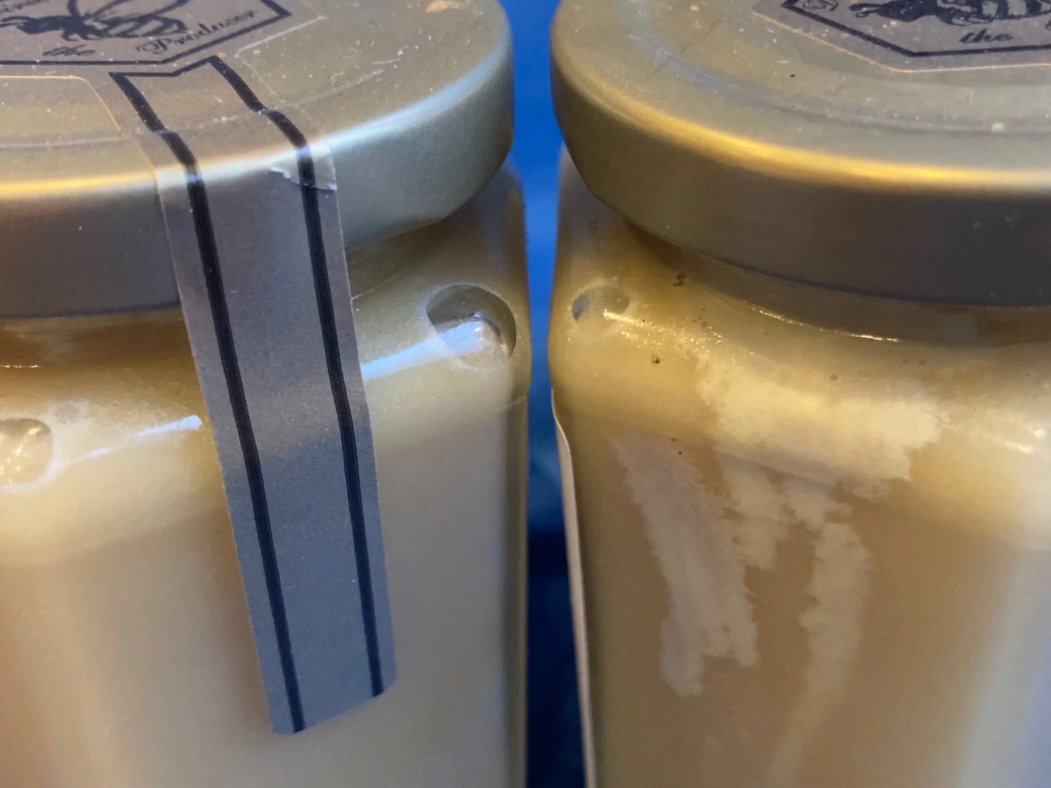 If you are not careful and do not use warm jars, warm honey, and you have not sieved the honey well enough, or the honey cools too fast, tiny bubbles may form on the walls of the jars. This is called frosting. Initially, it looks like white swirls; it does not affect the taste.